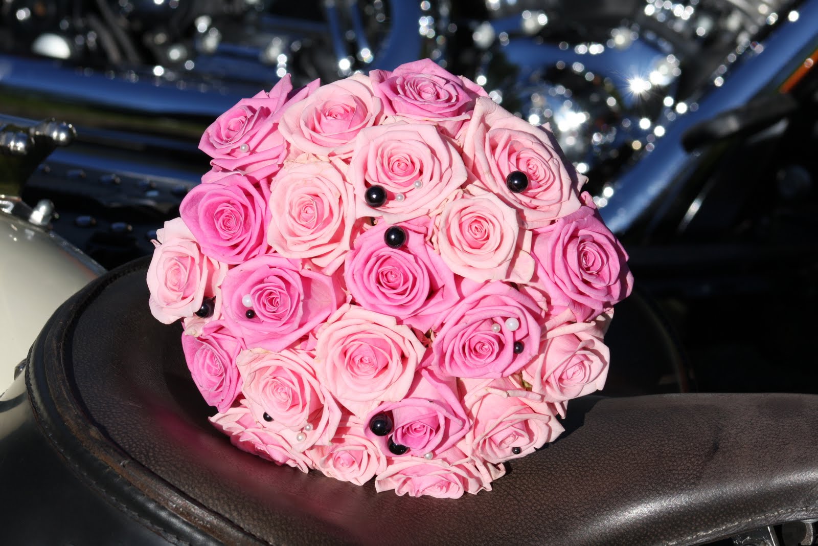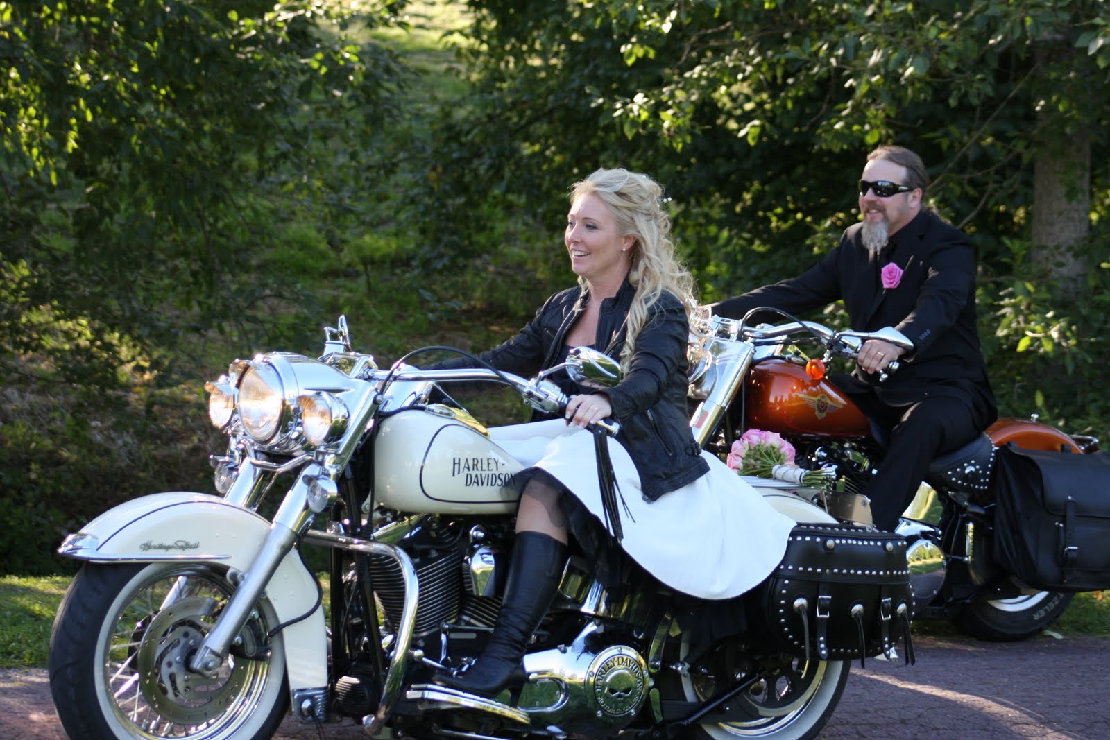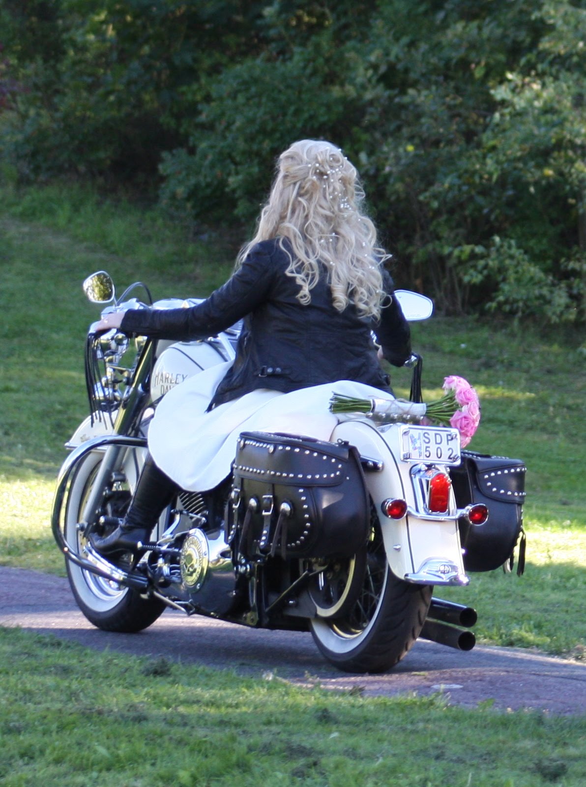 Som mc-brud med brudbuketten fastknuten på pakethållaren!